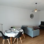 Dit appartement biedt gasten een balkon, een zitruimte en een keuken, evenals modern comfort zoals een wasmachine en geluidsdichte muren. Om uw comfort te garanderen is er een apart toilet, een douche en een wasmachine in de accommodatie. Verder kunt u genieten van een haardroger, toiletartikelen en handdoeken in de badkamer.